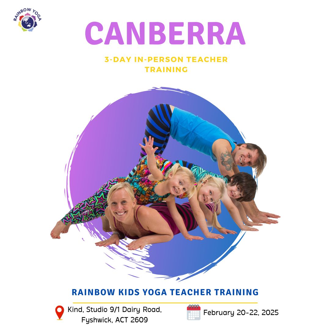 This Rainbow Kids Yoga Teacher Training in Canberra February 20-22, 2025 is designed for anyone who loves working with children, teens and/or families, are passionate about yoga, mindfulness and healthy living. During the course, you learn practical and fun ways to teach yoga to children of all ages. By doing this course you receive an array of up to date knowledge and techniques. You do not need to be a yoga teacher to take the course.